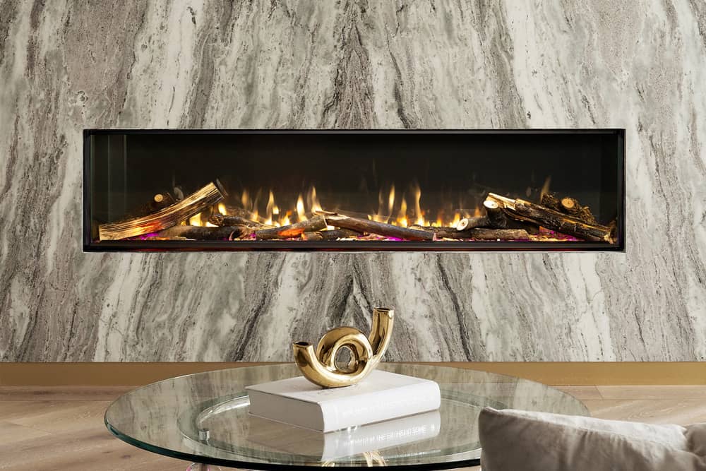 Les foyers électriques LEX-S offrent une visualisation réaliste ininterrompue de bûches et de feu.